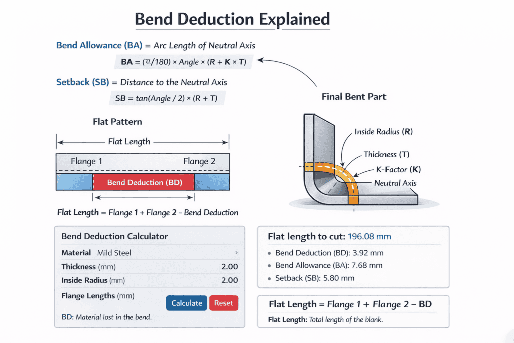 *This calculator is provided as a guide only. Actual flat patterns and bend results may vary depending on press brake type,